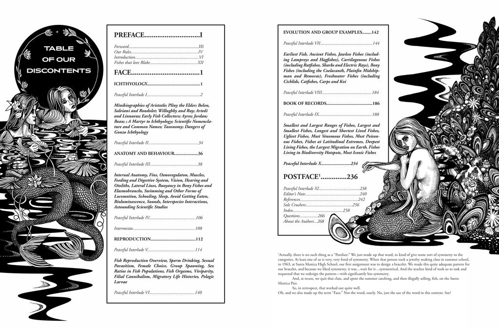 But seriously, and if we can just have a little heart-to-heart here, this book is kind of like a petty bourgeois croissant stuffed to overflowing with Nutella. But, in this instance, we have substituted stuff about fishes for that sweet, sweet elixir. What kinds of stuff? Well, aspects of fish biology, fish ecology, fish behavior, the history of ichthyology, piscine sex, fishy violence...you know...stuff. And, while you are being force fed this stuff, we will manage to, hmmm, not tickle your funny bone exactly, but maybe give it a swift kick where the sun don't shine.